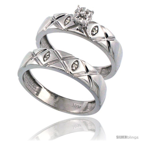 10k White Gold 2-Pc Diamond Engagement Ring Set w/ 0.043 Carat Brilliant Cut Diamonds, 5/32 in. (4.5mm) wide