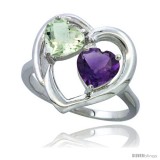 10K White Gold Heart Ring 6mm Natural Amethyst & Green Amethyst Diamond Accent