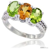 10K White Gold Natural Citrine & Peridot Sides Ring 3-Stone Oval 7x5 mm Diamond Accent