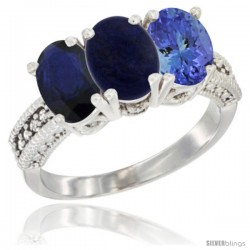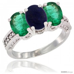 10K White Gold Natural Lapis & London Blue Topaz Sides Ring 3-Stone Oval 7x5 mm Diamond Accent