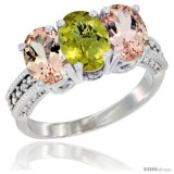10K White Gold Natural Lemon Quartz & Morganite Sides Ring 3-Stone Oval 7x5 mm Diamond Accent
