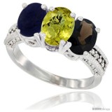 10K White Gold Natural Smoky Topaz, Lemon Quartz & Lapis Ring 3-Stone Oval 7x5 mm Diamond Accent
