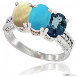 10k White Gold 3-Stone London Blue Topaz Rings -
