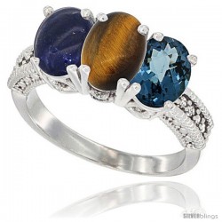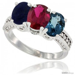 10k White Gold 3-Stone London Blue Topaz Rings -