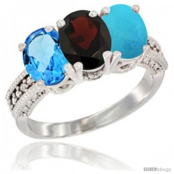 10k White Gold 3-Stone Swiss Blue Topaz Rings -