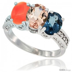 10k White Gold 3-Stone London Blue Topaz Rings -