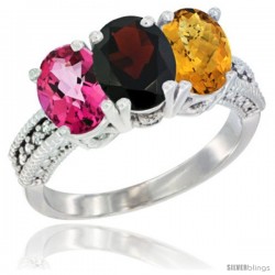 10k White Gold 3-Stone Whisky Quartz Rings -