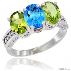 10k White Gold 3-Stone Swiss Blue Topaz Rings -