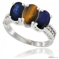 10k White Gold 3-Stone Blue Sapphire Rings -