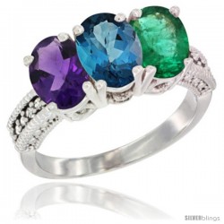 10k White Gold 3-Stone London Blue Topaz Rings -