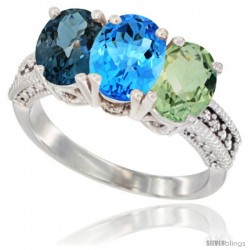 10k White Gold 3-Stone London Blue Topaz Rings -