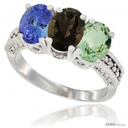 10k White Gold 3-Stone Green Amethyst Rings -