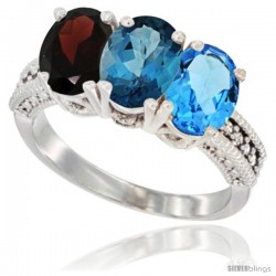 10k White Gold 3-Stone Garnet Rings -