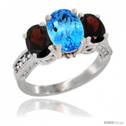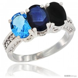 10k White Gold 3-Stone Swiss Blue Topaz Rings -