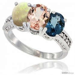 10k White Gold 3-Stone White Opal Rings -