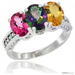 10k White Gold 3-Stone Pink Topaz Rings -