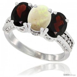 10k White Gold 3-Stone White Opal Rings -