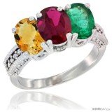 10K White Gold Natural Citrine, Ruby & Emerald Ring 3-Stone Oval 7x5 mm Diamond Accent