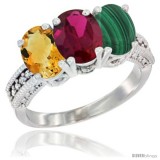 10K White Gold Natural Citrine, Ruby & Malachite Ring 3-Stone Oval 7x5 mm Diamond Accent