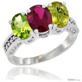 10K White Gold Natural Peridot, Ruby & Lemon Quartz Ring 3-Stone Oval 7x5 mm Diamond Accent