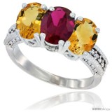 10K White Gold Natural Ruby & Citrine Sides Ring 3-Stone Oval 7x5 mm Diamond Accent