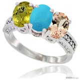 10K White Gold Natural Morganite, Turquoise & Lemon Quartz Ring 3-Stone Oval 7x5 mm Diamond Accent