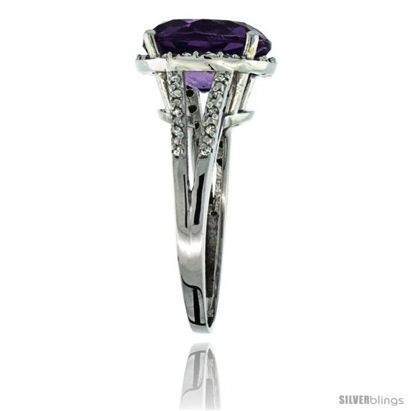 10k White Gold Diamond Amethyst Ring 5.25 ct Round Shape 11 mm, 1/2 in wide