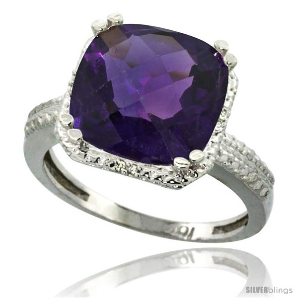 10k White Gold Diamond Amethyst Ring 5.94 ct Checkerboard Cushion 11 mm Stone 1/2 in wide