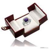 10K White Gold Natural Amethyst Ring Cushion-cut 9x9 Stone Diamond Accent