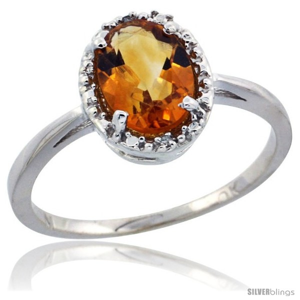 10k White Gold Diamond Halo Citrine Ring 1.2 ct Oval Stone 8x6 mm, 1/2 in wide