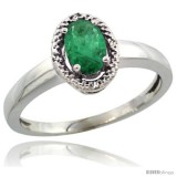 10k White Gold Diamond Halo Emerald Ring 0.75 Carat Oval Shape 6X4 mm, 3/8 in (9mm) wide