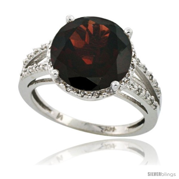 10k White Gold Diamond Garnet Ring 5.25 ct Round Shape 11 mm, 1/2 in wide