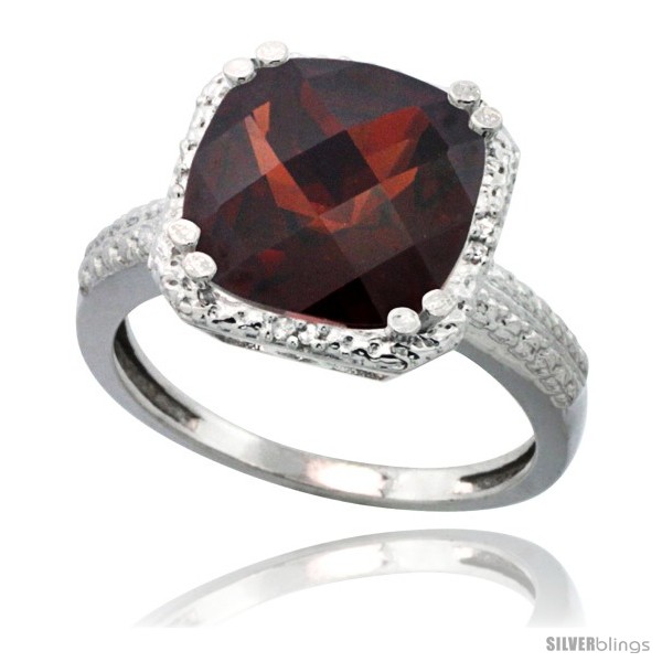 10k White Gold Diamond Garnet Ring 5.94 ct Checkerboard Cushion 11 mm Stone 1/2 in wide