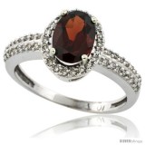 10k White Gold Diamond Halo Garnet Ring 1.2 ct Oval Stone 8x6 mm, 3/8 in wide