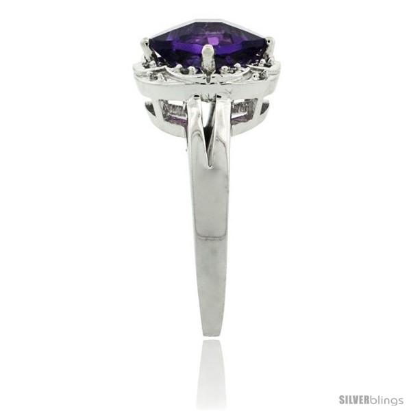 10k White Gold Diamond Halo Garnet Ring 2.7 ct Checkerboard Cut Cushion Shape 8 mm, 1/2 in wide