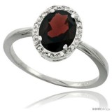 10k White Gold Garnet Diamond Halo Ring 1.17 Carat 8X6 mm Oval Shape, 1/2 in wide