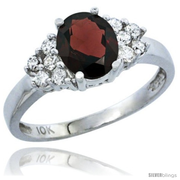 10K White Gold Natural Garnet Ring Oval 8x6 Stone Diamond Accent