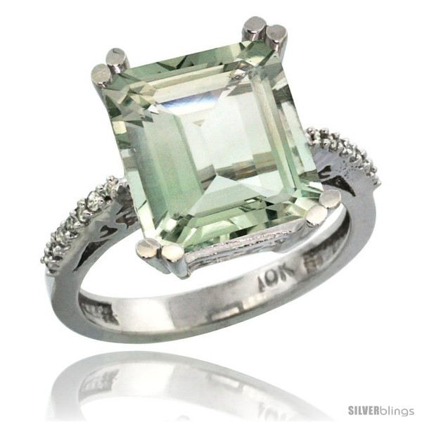 10k White Gold Diamond Green-Amethyst Ring 5.83 ct Emerald Shape 12x10 Stone 1/2 in wide