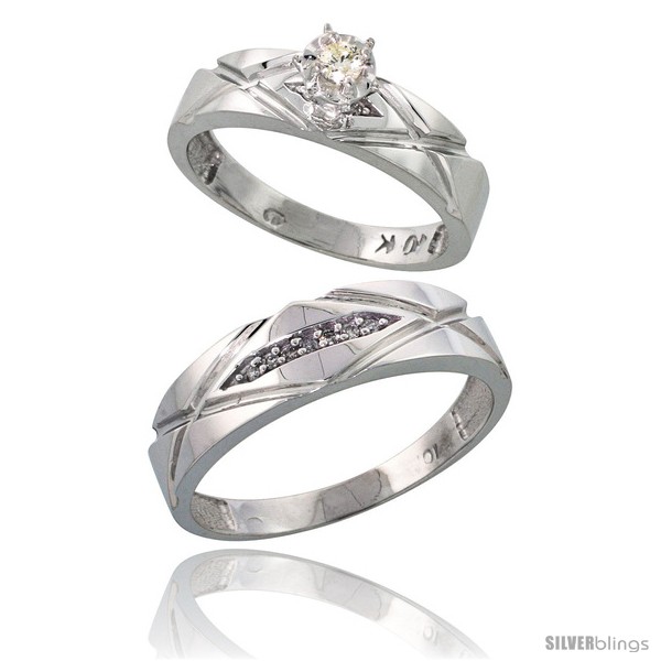 10k White Gold 2-Piece Diamond wedding Engagement Ring Set for Him & Her, 5mm & 6mm wide -Style Ljw101em