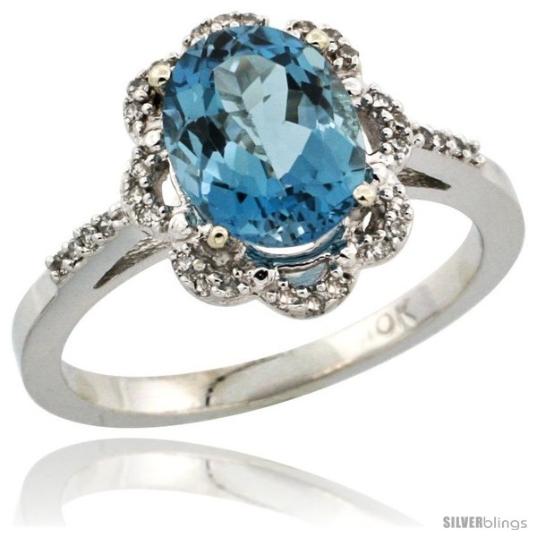 10k White Gold Diamond Halo London Blue Topaz Ring 1.65 Carat Oval Shape 9X7 mm, 7/16 in (11mm) wide
