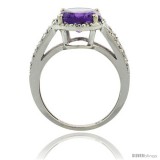 10k White Gold Diamond Halo Mystic Topaz Ring 2.85 Carat Oval Shape 11X9 mm, 7/16 in (11mm) wide