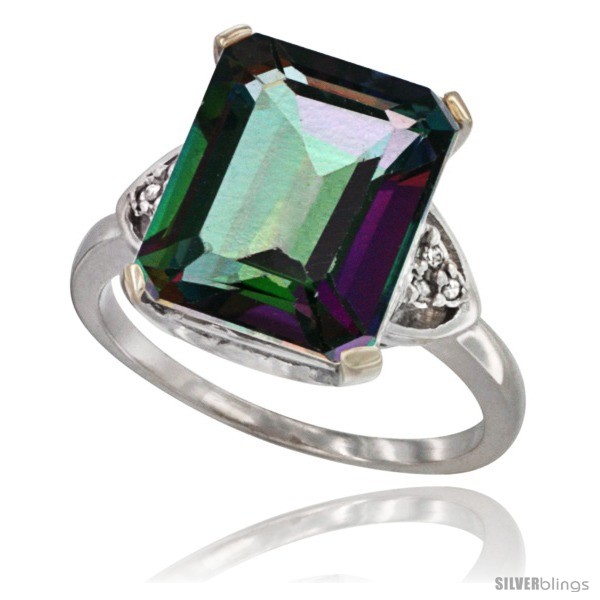 10K White Gold Natural Mystic Topaz Ring Emerald-shape 12x10 Stone Diamond Accent