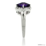 10k White Gold Diamond Halo Peridot Ring 2.7 ct Checkerboard Cut Cushion Shape 8 mm, 1/2 in wide