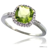 10k White Gold Diamond Peridot Ring 1.5 ct Checkerboard Cut Cushion Shape 7 mm, 3/8 in wide