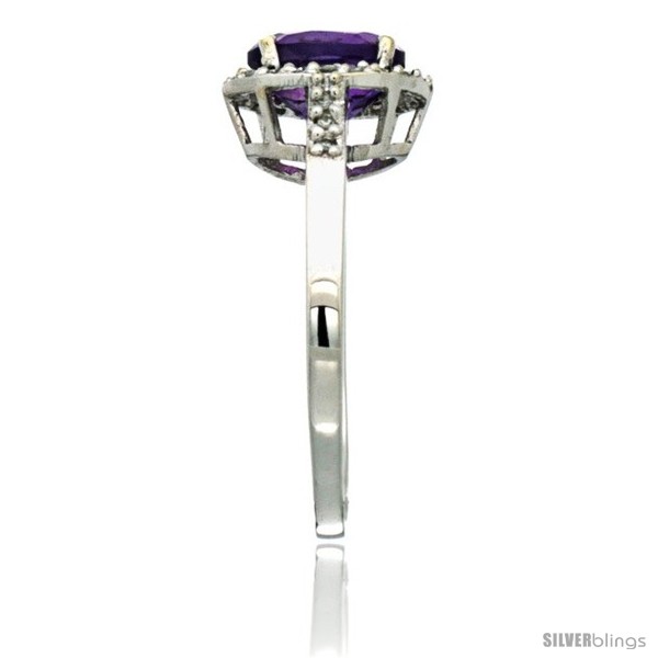 10k White Gold Diamond Peridot Ring Oval Stone 8x6 mm 1.17 ct 3/8 in wide