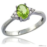 10K White Gold Natural Peridot Ring Oval 7x5 Stone Diamond Accent