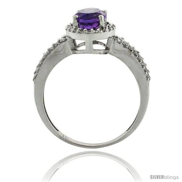 10k White Gold Diamond Halo Pink Topaz Ring 1.2 ct Oval Stone 8x6 mm, 3/8 in wide