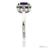 10k White Gold Diamond Pink Topaz Ring Oval Stone 8x6 mm 1.17 ct 3/8 in wide