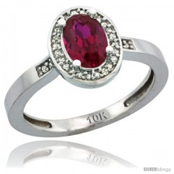 10K White Gold Natural Ruby Ring Oval 7x5 Stone Diamond Accent -Style Cw914168