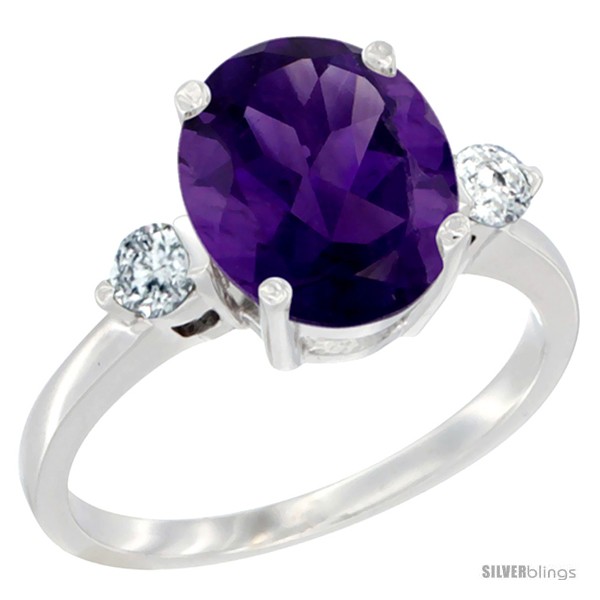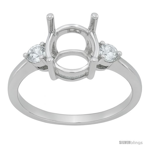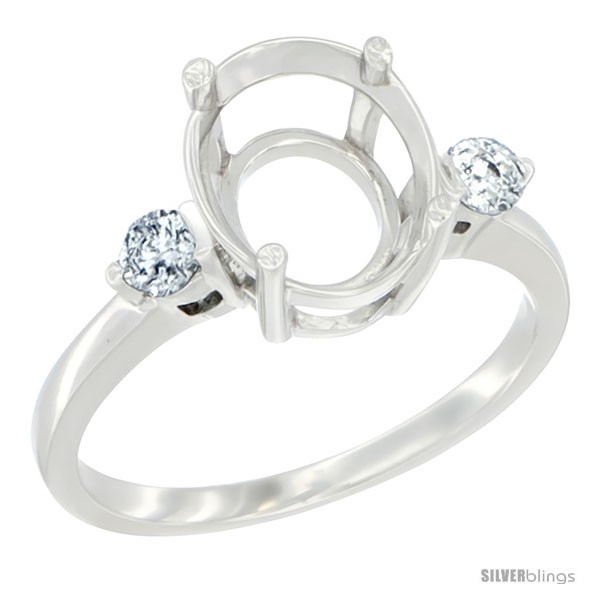 10k White Gold Semi-Mount ( 10x8 mm ) Oval Stone Ring with Brilliant Cut Diamonds